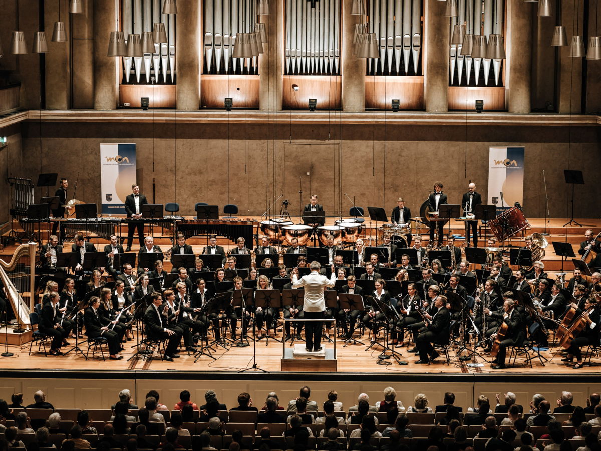 Zum Abschluss des Tages erklang sinfonische Blasmusik vom Feinsten zum Galakonzert im Herkulessaal in München. Dirigent Markus Theinert hatte das Sinfonische Blasorchester des MON zur Höchstform motiviert und die amerikanische Sopranistin Amanda Mace engagiert.