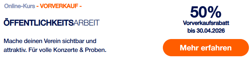 Genau hier setzt dieser Onlinekurs an: Ihr erhaltet praxisnahe Einblicke und direkt umsetzbare Strategien, um euren Musikverein sichtbar, modern und attraktiv zu präsentieren.